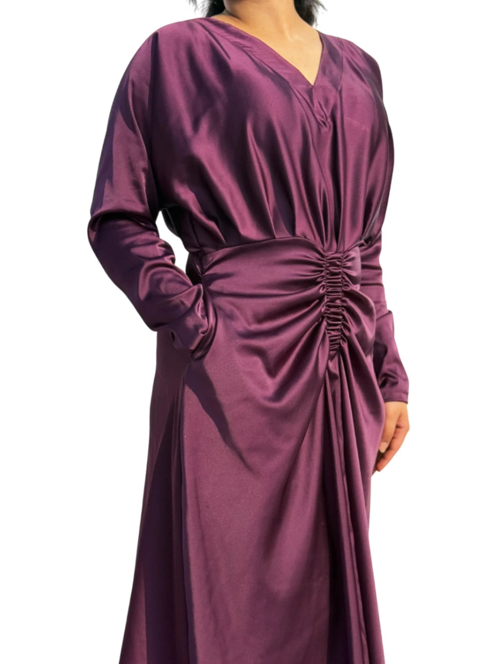 Floral Bow Strap Bodycon Dress Russian Violet Color