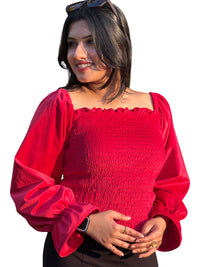 Upgrade your wardrobe with our Smocked Top, a perfect blend of style and comfort. Designed to add a touch of elegance, this mid-length top features a flattering square neckline and peasant full sleeves, creating a timeless silhouette.